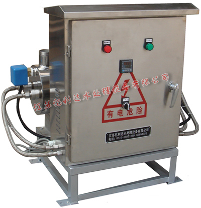 本裝置采取了特制的高強度臭氧紫外線殺菌燈和內(nèi)壁經(jīng)過特殊處理的微炭臭氏體不銹鋼筒體,筒體外側(cè)經(jīng)特殊拋光處理,使經(jīng)過預(yù)處理的水在流過筒體時受到185nm紫外線的足夠線量的照射,具有良好的殺菌效果,也有效減少了對超純水的影響。