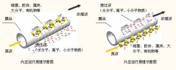 超濾膜的孔徑大約在 0.002—0.1 微米范圍內(nèi)(MWCO 約為 1,000-500,000)。溶解物質(zhì)和比膜孔徑小的物質(zhì)能作為透過(guò)液透過(guò)濾膜,不能透過(guò)濾膜的物質(zhì)將被截留下來(lái)濃縮于排放液中。因此產(chǎn)水(透過(guò)液)將含有水、離子和小分子物質(zhì),而膠體物質(zhì)、顆粒、細(xì)菌、病毒和原生動(dòng)物將被膜去除。