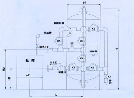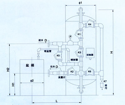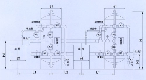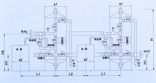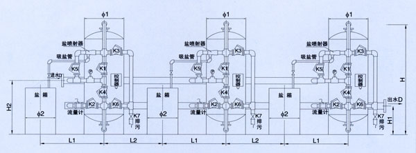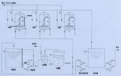 ◆ JME3型多閥軟水系統(tǒng)流程示意圖-含溶鹽系統(tǒng)